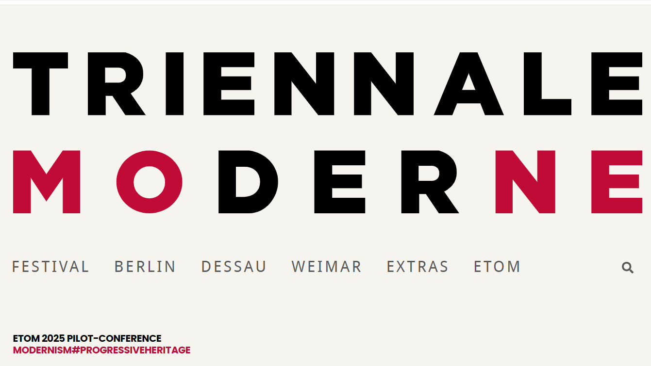 ETOM Conference – Modernism #Progressive Heritage 28 + 29 Nov 2025 in BerlinInternational Conference „Modernism # Progressive Heritage“ On 28 and 29 November, lectures and contributions by international experts will address the question of how the urban, architectural, cultural and social heritage of modernism can be better protected, communicated, and transformed. The conference, organised by… Continue reading Conference Modernism and Progressive Heritage