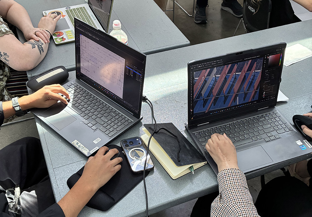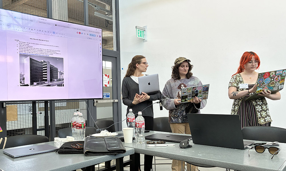 Working at Watt Hall, USC School of Architecture students and tutors are still impressed by the site visit to Neutra’s Hall of Records, the topic of the workshop. Once behind the laptop, looking at historic plans, images, journal articles and trade catalogs, the building comes more and more to live! Comparing the current with the historic situation gives great insights in the intended and lived architecture of this Modern building!